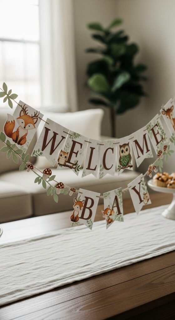 When you’re planning a woodland-themed baby shower, nothing sets the magical forest scene quite like the perfect banner. You’ll want to incorporate nature inspired motifs that capture the enchanting atmosphere you’re creating.