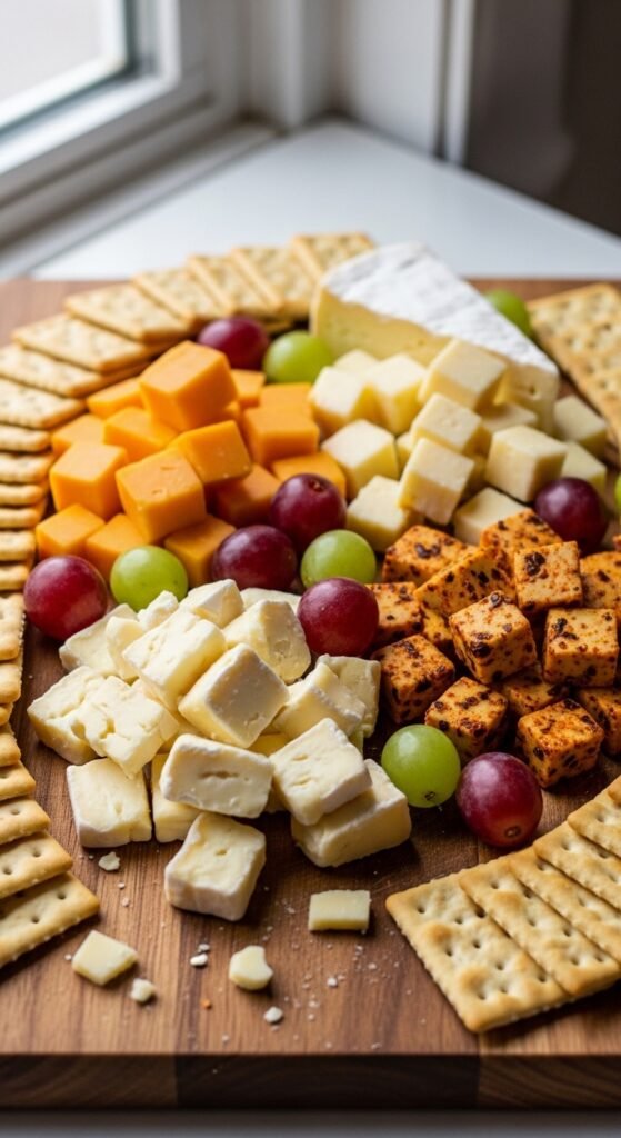 The secret? Plunge cheeses into different shapes—cubes, triangles, and thin slices. This creates texture variation that makes your spread look professionally crafted without the premium price tag.