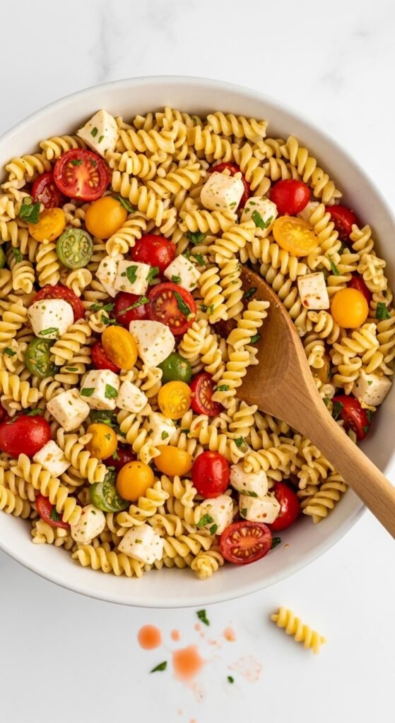 Start with basic rotini or penne pasta—buy store brand to save dollars. For a classic cold pasta salad, mix mayo, diced vegetables, and herbs. Want something livelier? Create a zesty pasta salad using Italian dressing, cherry tomatoes, and mozzarella cubes.