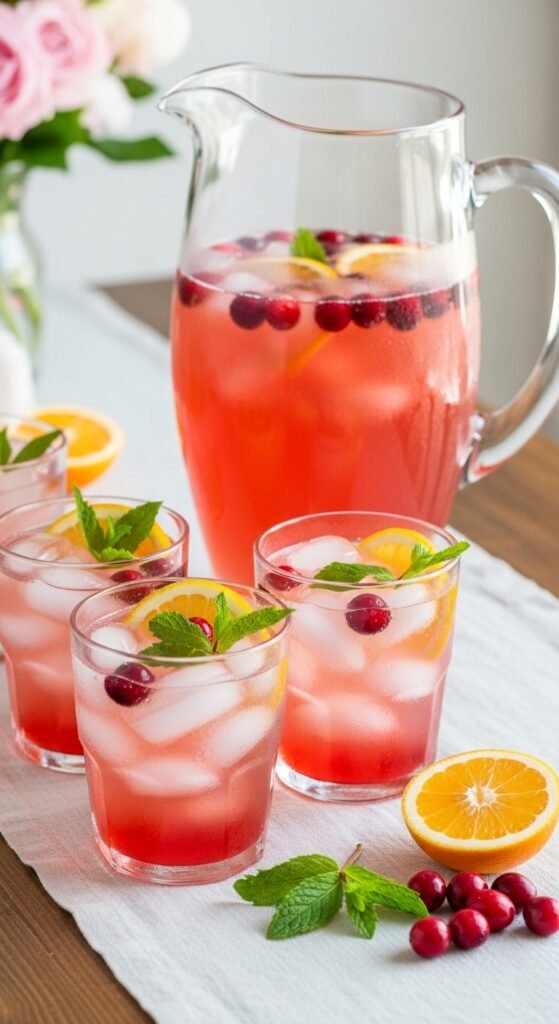 For something fancier, try non alcoholic mocktail recipes like virgin mojitos or sparkling cranberry punch. Mix cranberry juice, ginger ale, and lime slices for a beautiful pink drink that screams “baby celebration.”