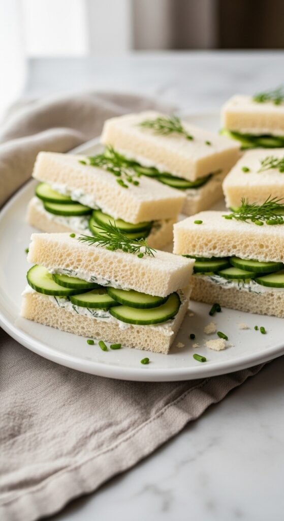 Start with thinly sliced white bread, removing crusts for that polished look. Spread softened cream cheese generously, then layer paper-thin cucumber rounds. Here’s my secret: pat those cucumbers dry first to prevent soggy sandwiches.