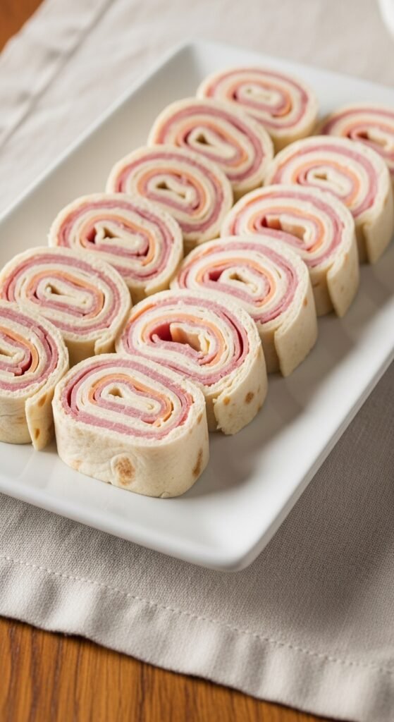 Start with soft tortillas or flatbread as your base. Spread cream cheese evenly, then layer thin ham slices and Swiss cheese. Roll tightly and refrigerate for thirty minutes—this helps everything hold together when slicing.