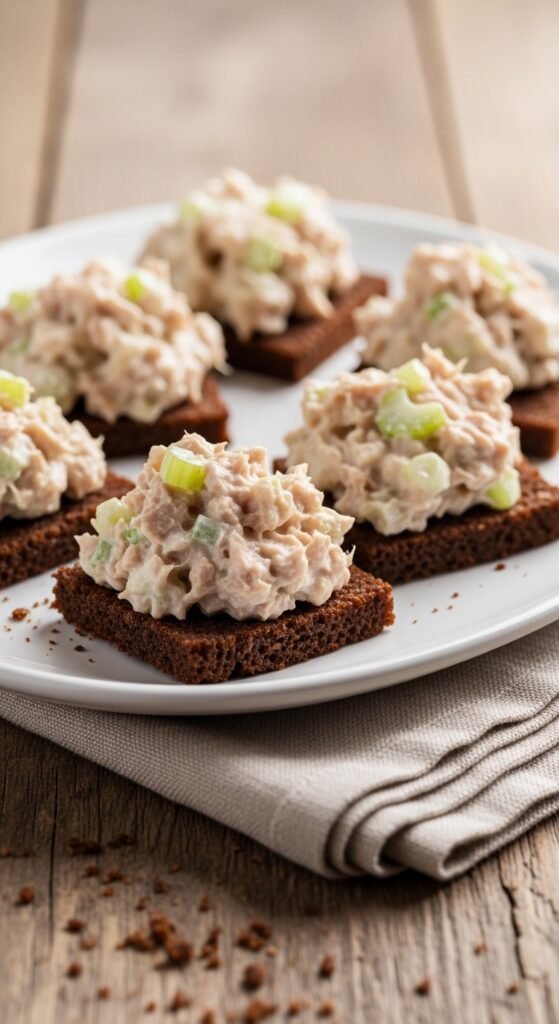 Tuna salad on pumpernickel squares delivers exactly that. The dense, dark bread provides a sturdy foundation that won’t get soggy, while its earthy flavor complements the fish beautifully.