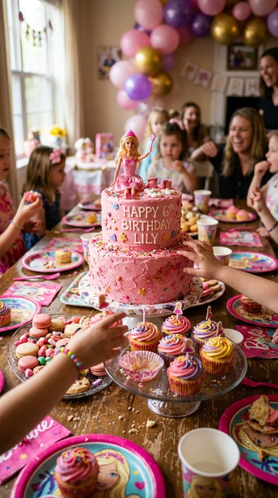 How you design the birthday cake can make or break the whole Barbie vibe you’ve worked so hard to create. Choose cake flavors your toddler actually loves, like vanilla or strawberry, since presentation means nothing if nobody eats it.