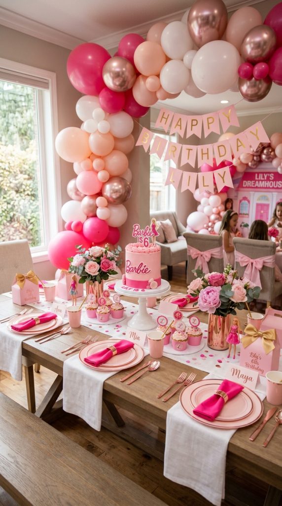 A balloon arch is one of those party elements that instantly changes any space into something magical—and for a Barbie birthday, it’s practically non-negotiable.