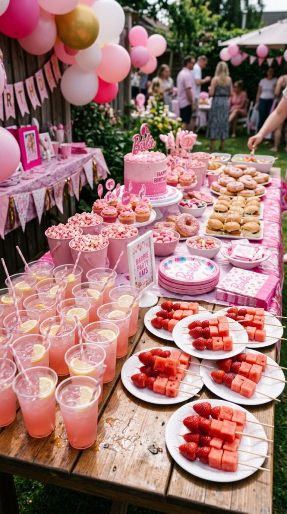 From cupcakes to candy, pink-themed treats can tie the entire food table together and make every bite feel like part of the Barbie experience.