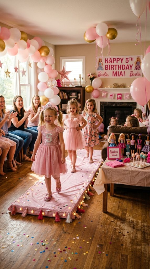 You can organize a barbie fashion show where little guests strut their outfits down a DIY runway — trust me, they’ll love it.