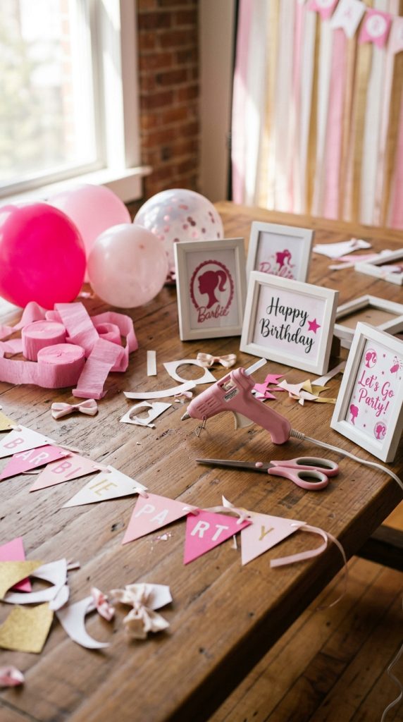 Buy the official Barbie bunting—it’s surprisingly affordable and saves you hours of cutting and gluing.
