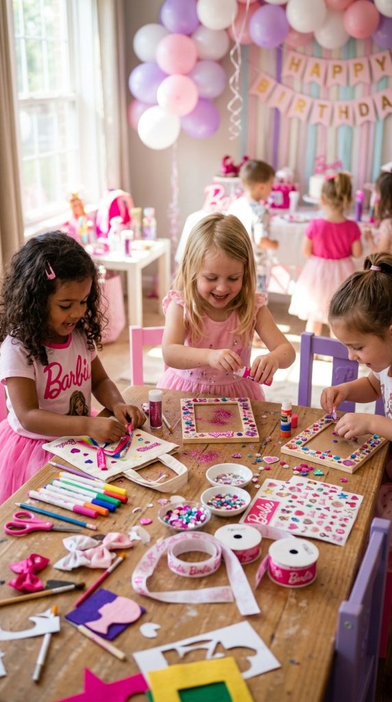 Set up a glitter craft corner where kids decorate mini Barbie-themed frames or tote bags. It keeps little hands busy and gives everyone a keeps fav to take home.