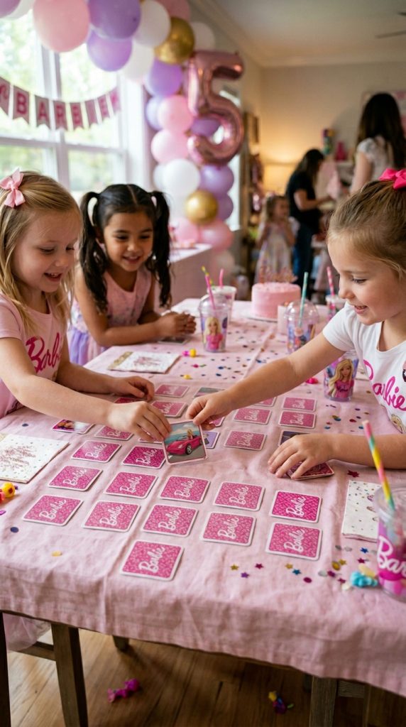 Memory matching is brilliant because it’s self-paced. Print Barbie-themed card pairs, laminate them, and you’ve got a reusable game that travels well.