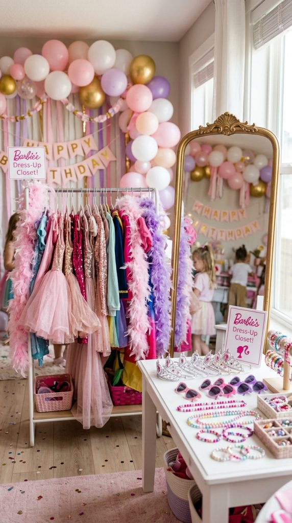 A dress-up station might just be the crown jewel of any Barbie birthday party.