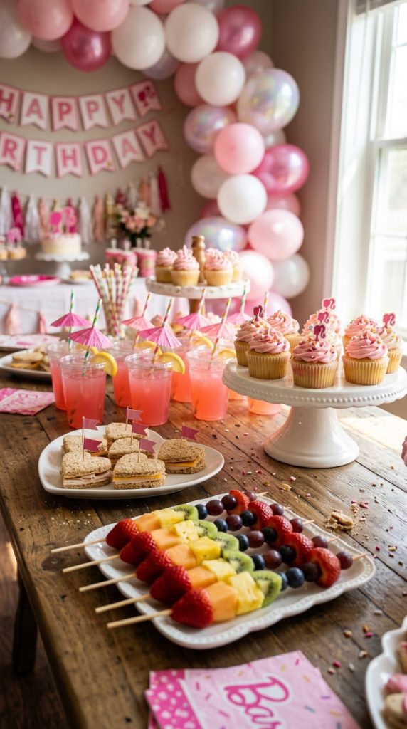 For an extra touch of glamour, lean into pink-themed food ideas that tie everything together into a cohesive and visually stunning spread worthy of a Barbie celebration.