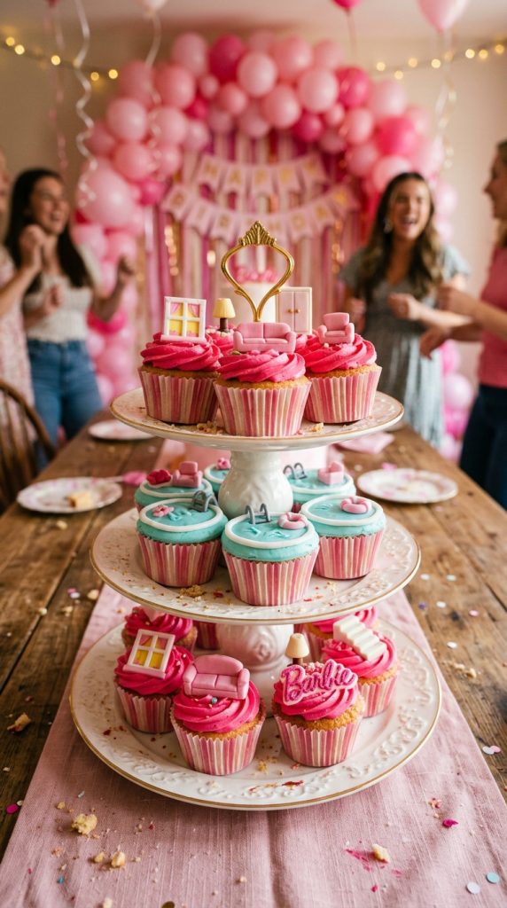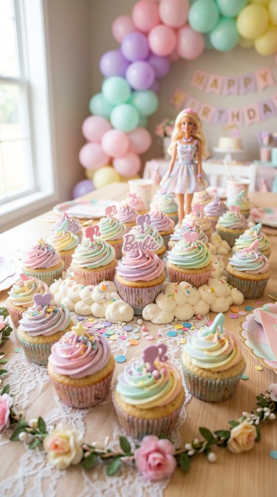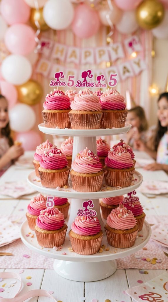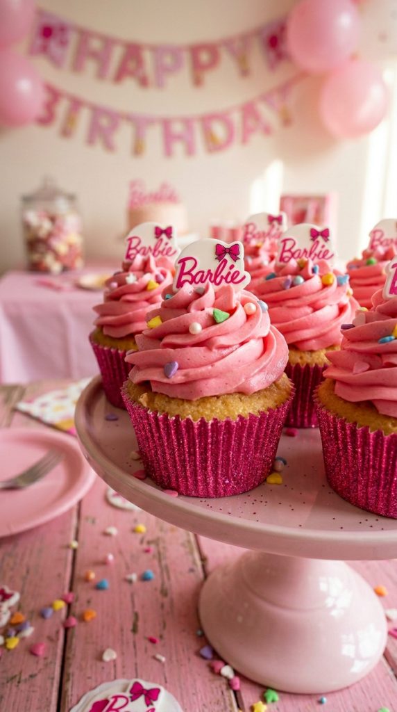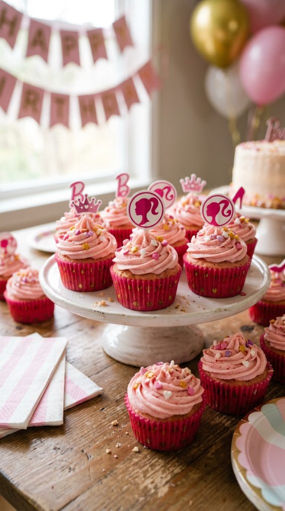 Pair these cupcakes alongside Barbie-inspired centerpieces to create a cohesive and glamorous party tablescape that ties the entire theme together.