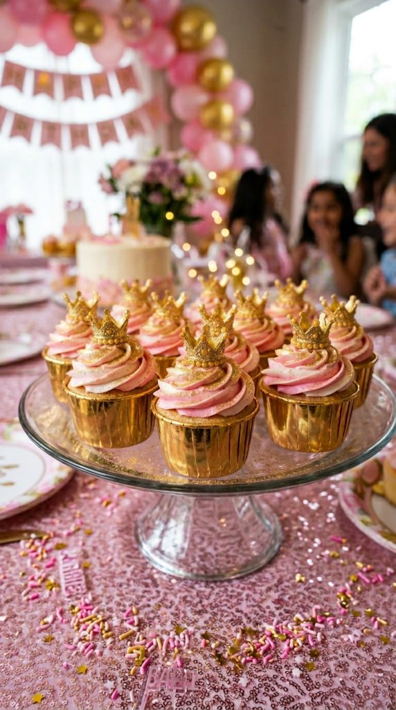 Frost your cupcakes with buttercream, then dust them with edible golden shimmer powder for that luxurious finish. It’s honestly easier than it sounds.