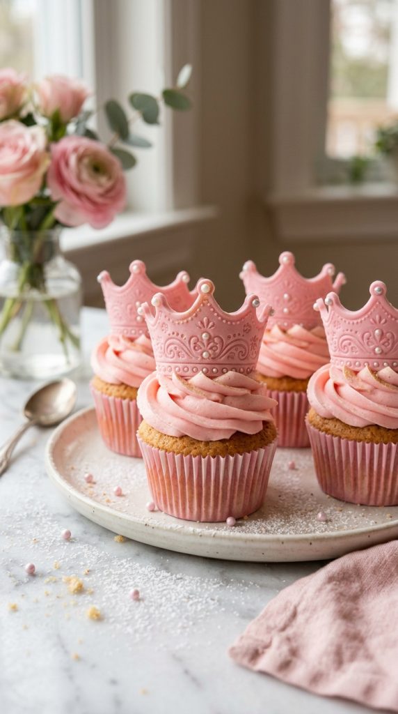Let the crowns harden overnight, then press them gently into frosted cupcakes.