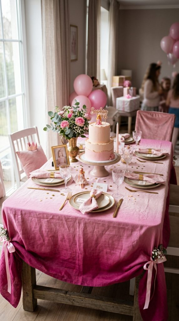 It’s a simple, affordable foundation that makes every centerpiece and decoration you place on top look absolutely stunning. For an even more elevated look, consider incorporating chic Barbie party inspirations that bring a fabulous, tailored feel to the entire celebration.