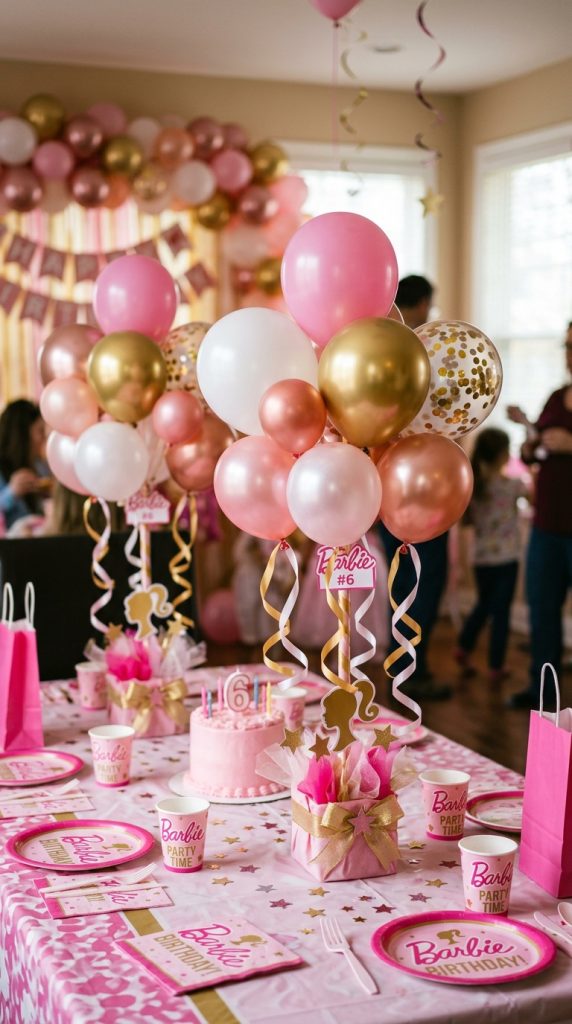 This type of creative display fits perfectly within the broader world of Barbie-inspired centerpieces that transform ordinary tablescapes into glamorous, eye-catching party moments.