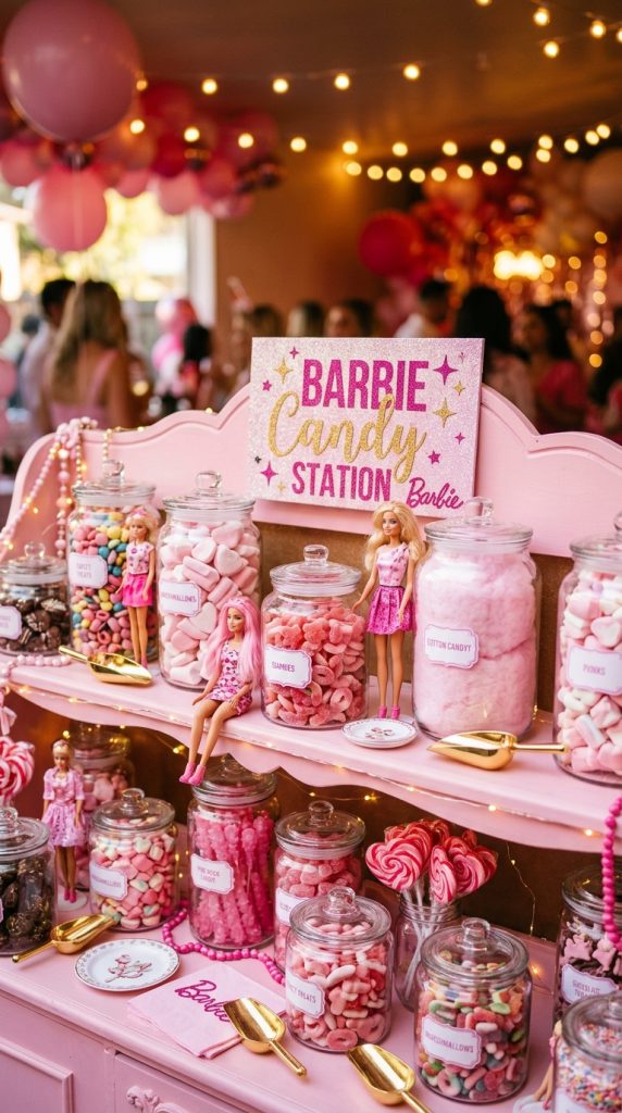 When you want a showstopping centerpiece that doubles as dessert, a candy bar styled like Barbie’s Dreamhouse is genuinely hard to beat.