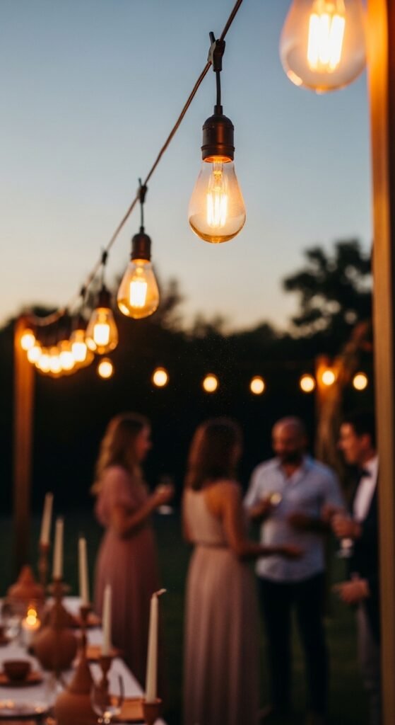 I’ve found that layering different heights creates the most enchanting string edison bulb arrangement. Hang some at eye level for conversation areas, then add higher strands for overhead ambiance. The warm, golden glow perfectly complements those terracotta arrangements while creating cozy pockets where guests naturally gather and mingle.