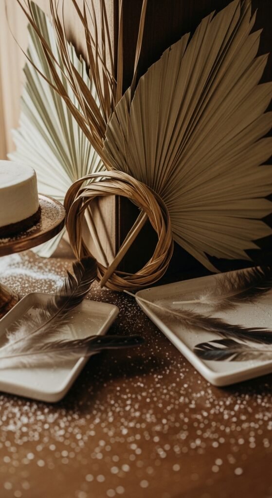 Arrange Feathers and Dried Palm Leaves as Natural Accents