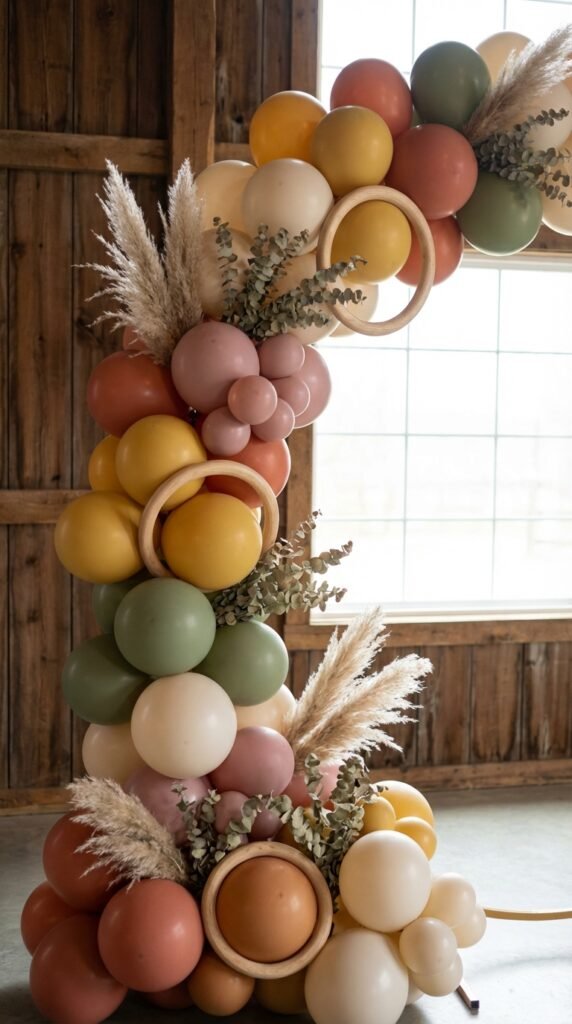 Finally, incorporate wooden balloon rings in varying sizes throughout your design. I’ve found that mixing 12-inch and 8-inch rings creates visual interest while maintaining that earthy vibe you’re after.
