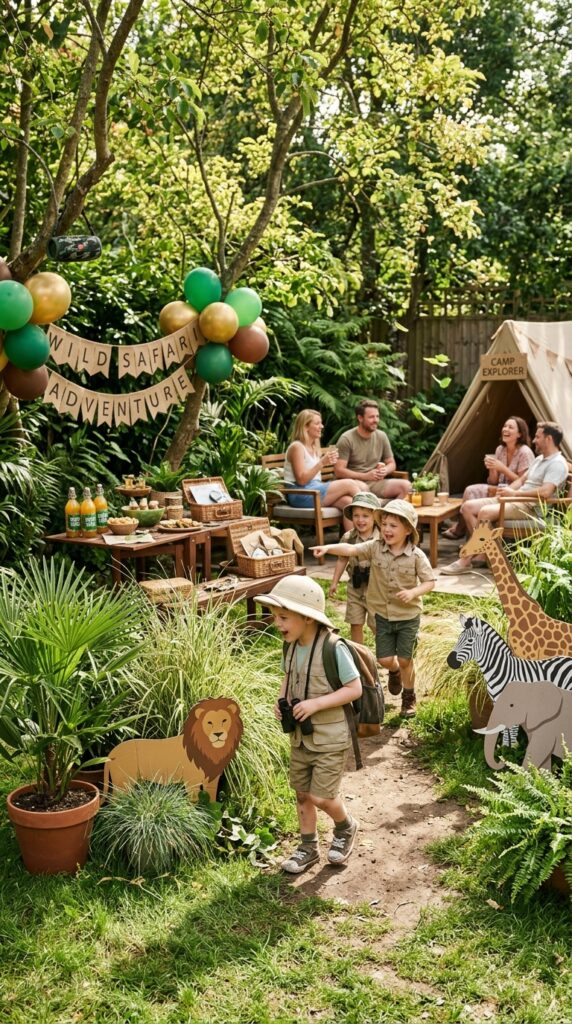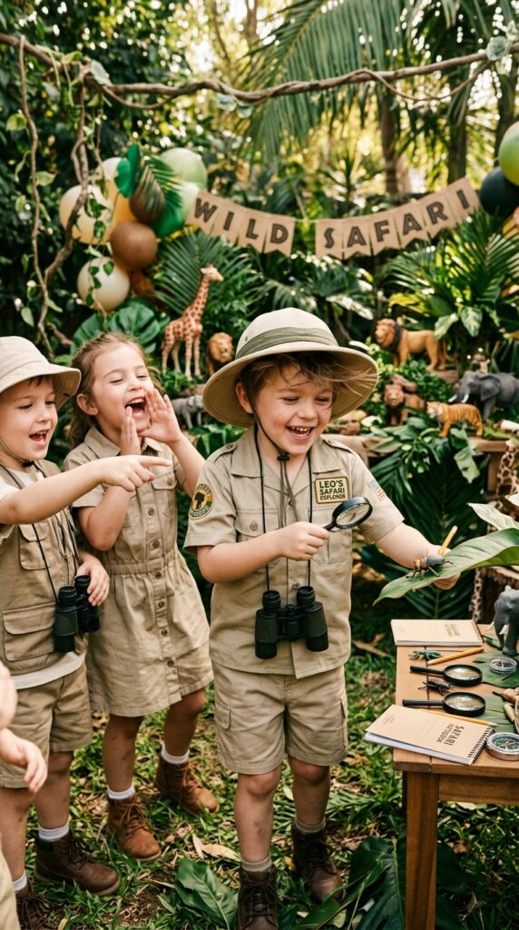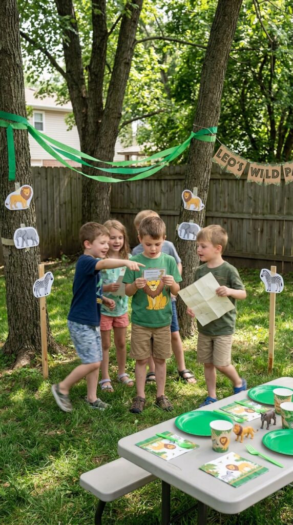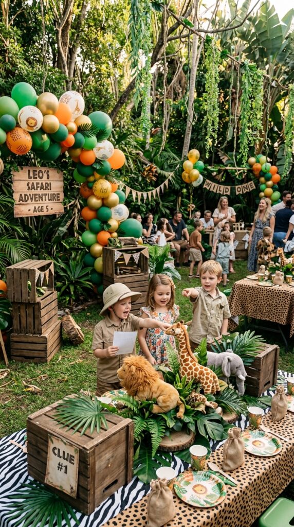Hide clues throughout your decorated space for a safari scavenger hunt — it turns decorations into interactive elements rather than passive backdrops.