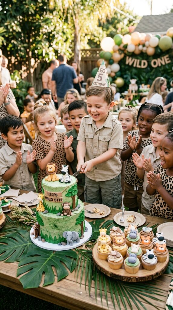 A treasure hunt with “explorer maps” leading to small prizes keeps everyone moving and genuinely excited throughout the celebration. You can also pair the games with safari party crafts to give kids a creative hands-on activity between rounds of play.
