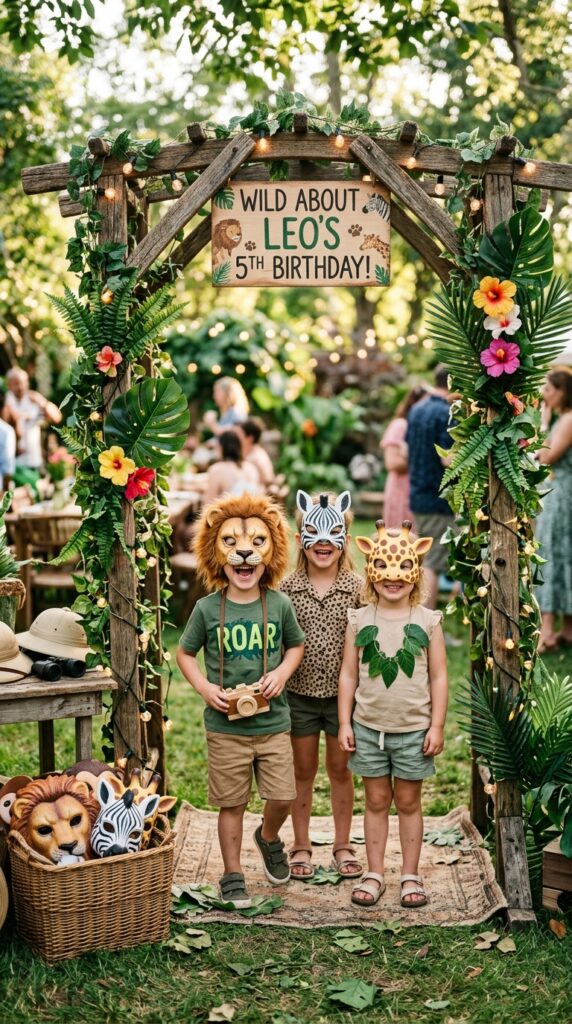 A jungle photo booth might just be the most underrated detail you can add to a safari party — and honestly, it pulls double duty as both entertainment and a keepsake machine.