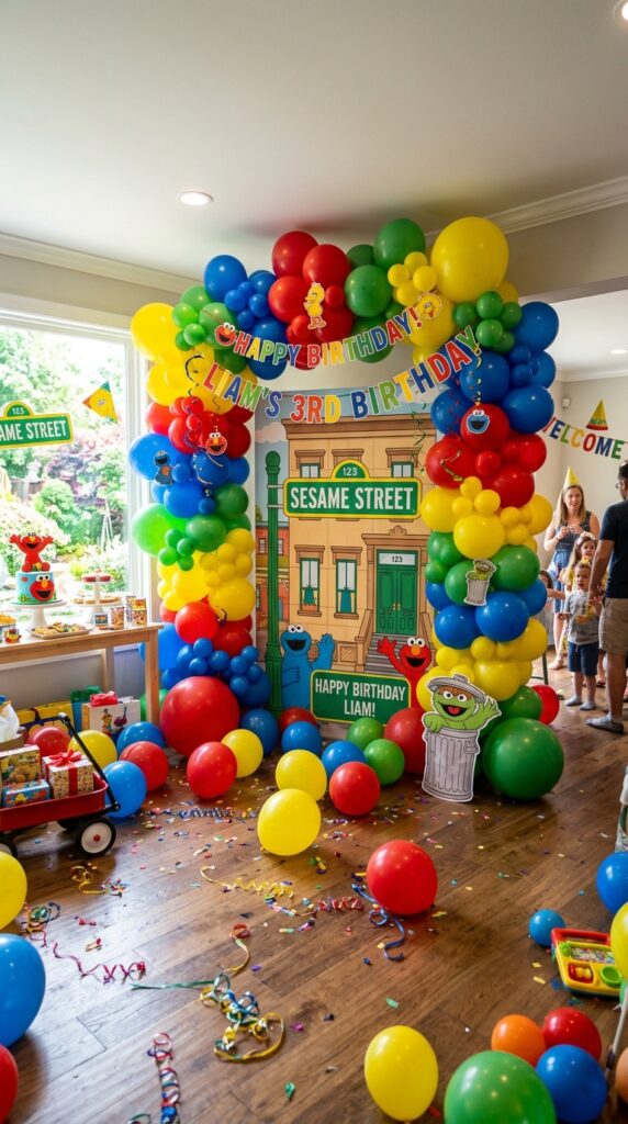 Once you’ve nailed your balloon arch, the next step is making sure your overall color palette hits just as hard. Think Big Bird yellow as your anchor color, then layer in Elmo red, Cookie Monster blue, and Oscar green. These bold combos create serious visual energy.