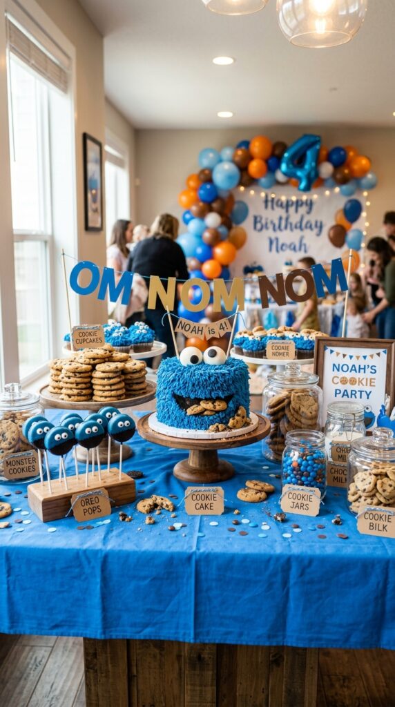 Stack cookies at different heights using small risers so the display looks intentional, not thrown together. You can even tie in a Sesame Street cake design featuring Cookie Monster to anchor the dessert table and pull the whole spread together. Your guests will genuinely stop and stare before they start grabbing — which is exactly what you want.