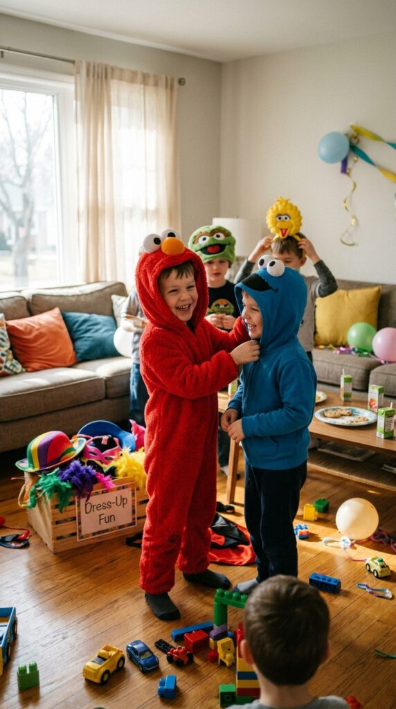 Set up a small dress-up station with simple accessories, letting boys swap costumes throughout the party.