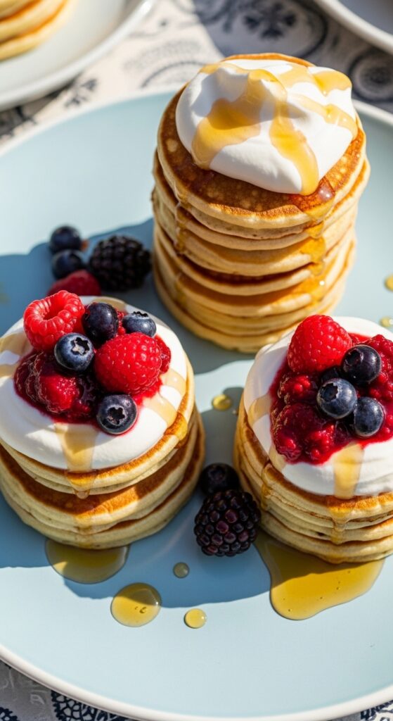 Mini Pancake Stacks With Berry Compote
