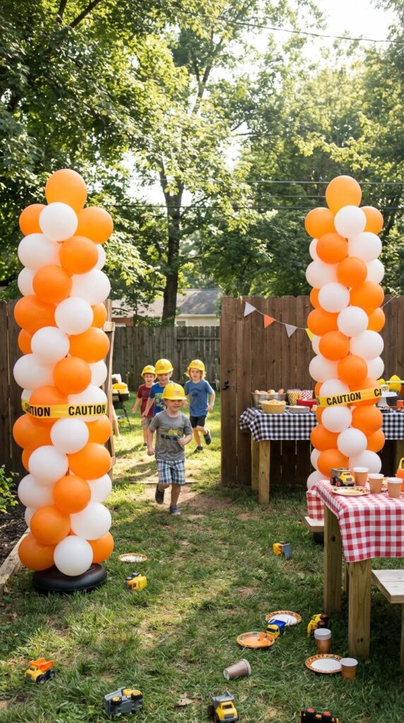 I’ve found that mixing matte orange balloons with metallic gold creates depth that photographs beautifully. Add yellow caution tape around the base, and you’ve got construction site decor that looks professionally styled but takes minutes to assemble.