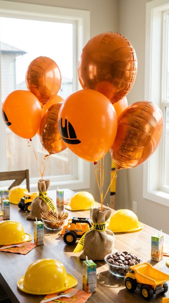 Pair these balloons with construction-inspired cupcakes featuring gravel toppings and tiny truck toppers for a cohesive theme that guests will remember.