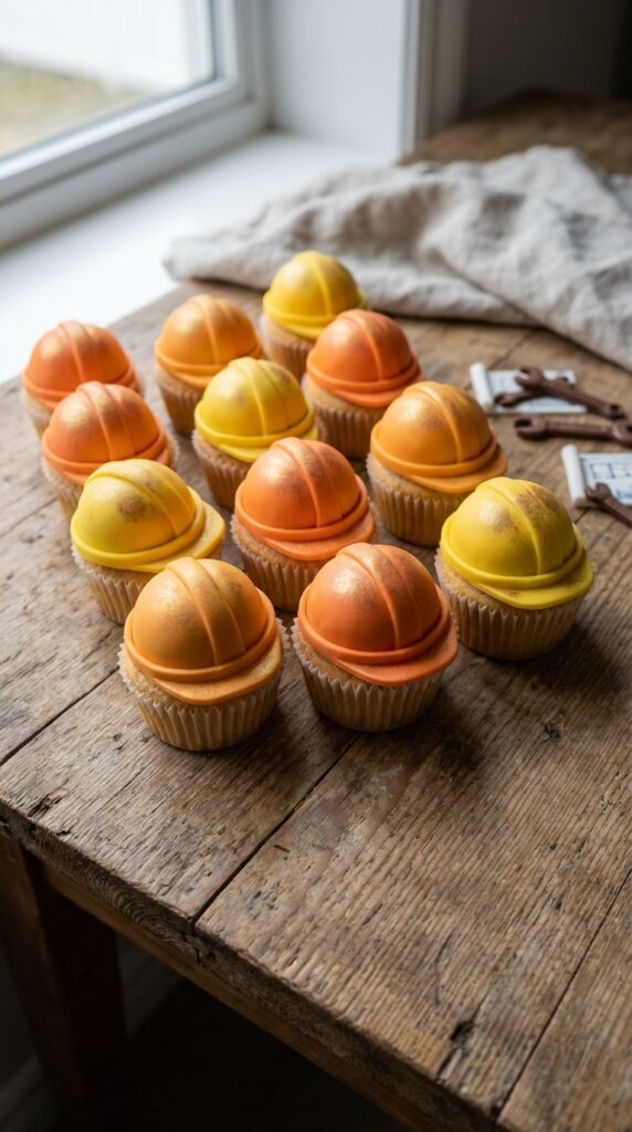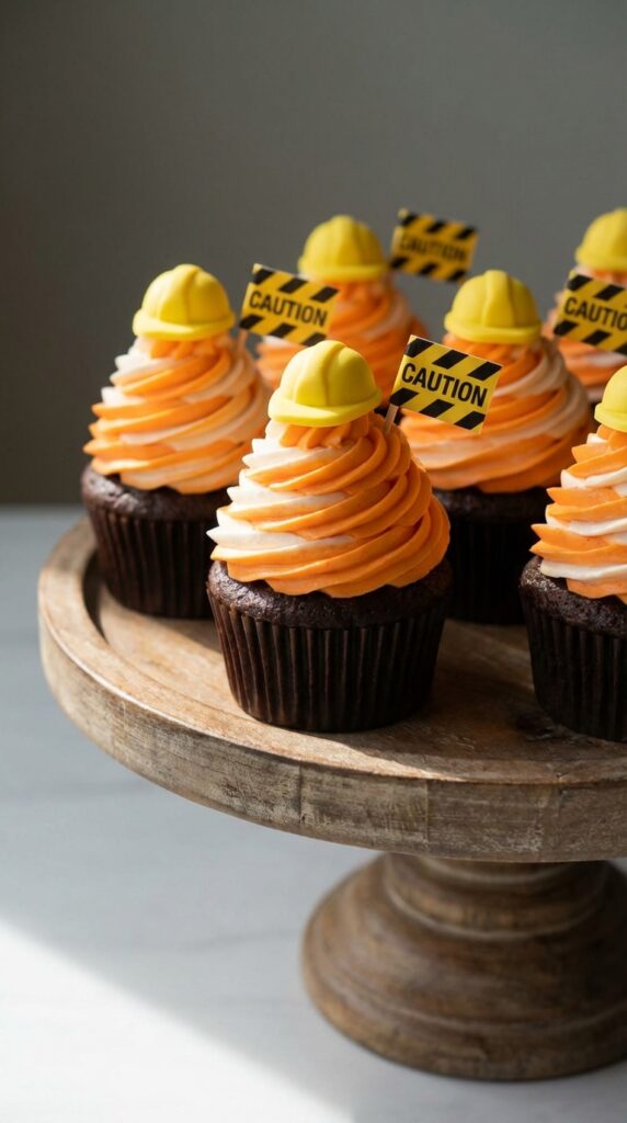 If you want construction cupcakes that practically scream “work zone ahead,” traffic cone designs deliver that perfect safety-themed punch with minimal effort.