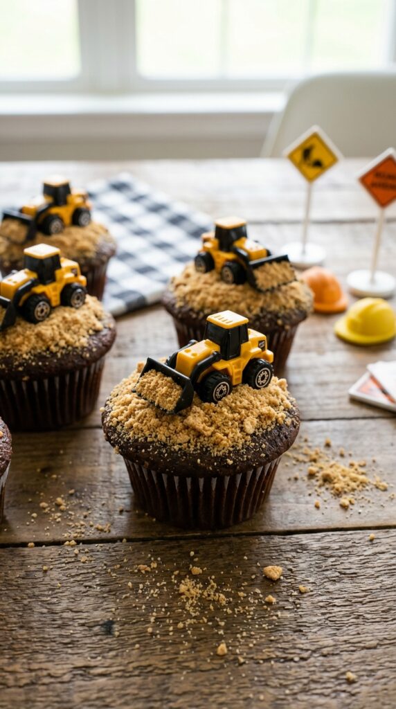 When you’re looking for construction cupcakes that practically scream “work zone,” crushed graham crackers become your secret weapon for creating edible dirt roads.