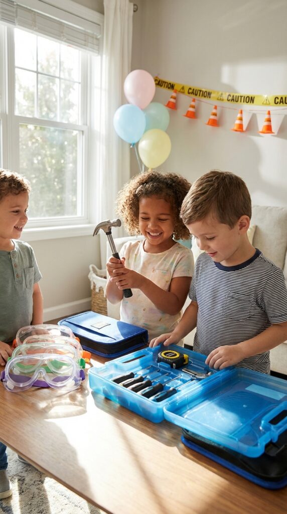 These tool kits also pair perfectly with interactive construction games that let kids put their new tools to immediate use at the party.