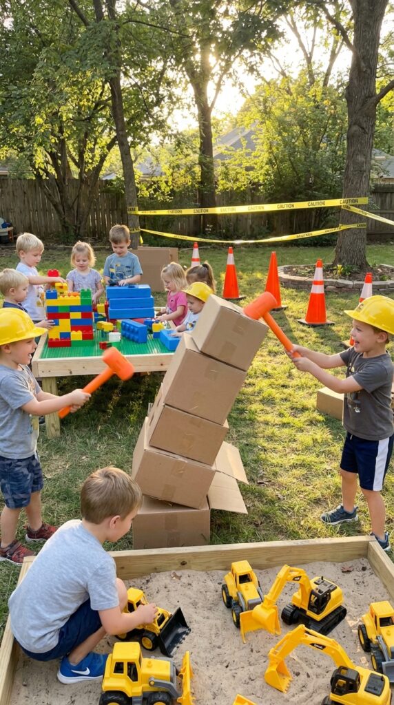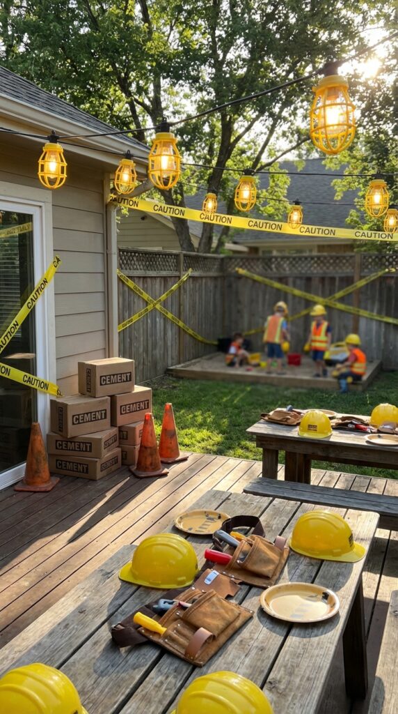 Here’s where it gets fun: incorporate authentic building materials. Stack cardboard boxes to look like cement bags, display actual orange traffic cones, and lay out tool belts as centerpieces. These real touches make kids feel like they’ve stepped onto an actual worksite instead of just another decorated room.