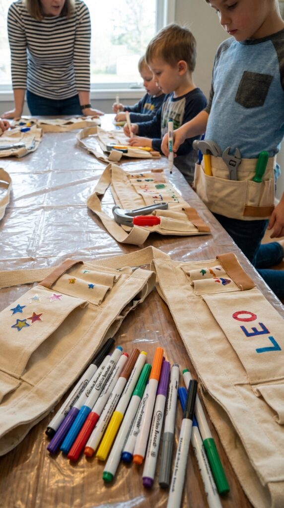 Kids love personalizing their belts with their names and fun designs, creating keepsakes they’ll actually use during party games. This craft station seamlessly integrates with the overall construction-themed party atmosphere while giving children a hands-on creative outlet.