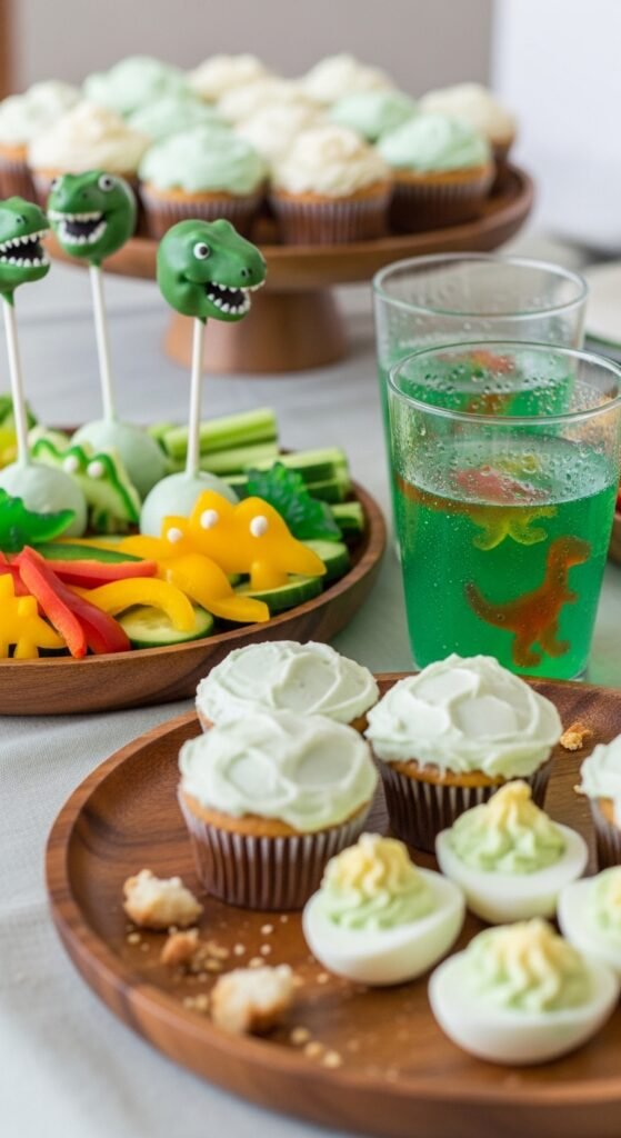 For the centerpiece dessert, consider making dinosaur cupcakes that combine both visual appeal and delicious flavors that kids will absolutely love.
