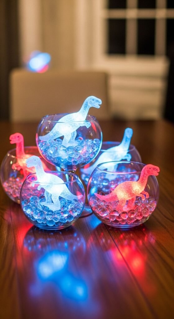 Look for figures with color changing effects that cycle through blues, greens, and reds. I’ve found that placing these illuminated dinos inside clear glass bowls amplifies their glow beautifully. The soft LED lights create an enchanting prehistoric atmosphere without being too bright for dinner conversation.