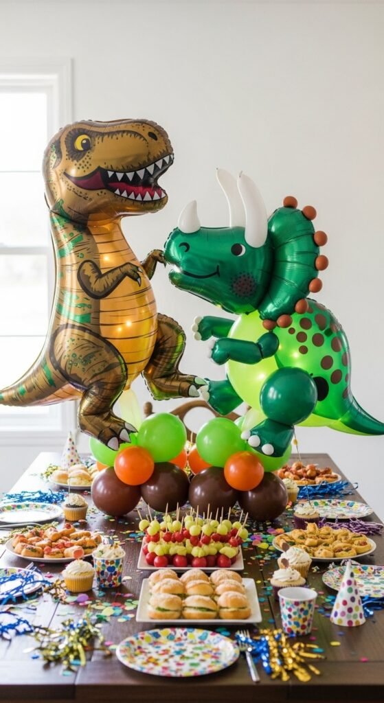 Nothing commands attention at a dinosaur birthday party quite like a towering T-Rex centerpiece that makes kids’ eyes light up the moment they walk into the room.