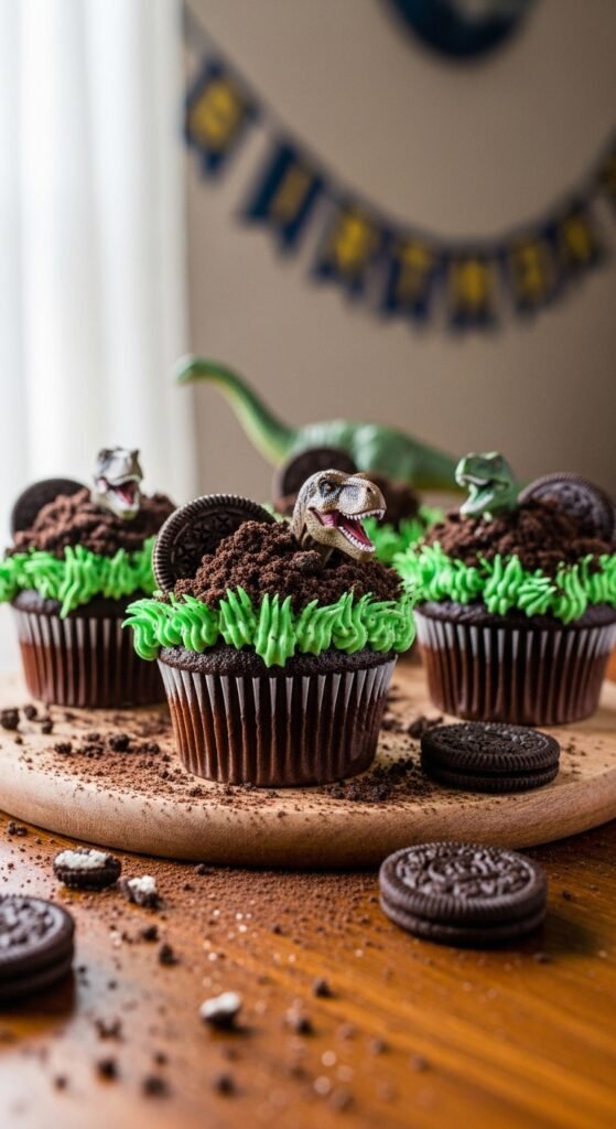 These cupcakes work beautifully alongside a larger dinosaur birthday cake as part of your complete party dessert spread.