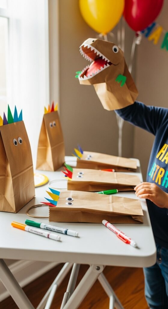 Paper Bag Dinosaur Puppets For Interactive Party Games