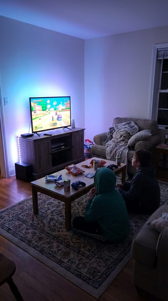 After all those dance-offs and nerf battles, some kids are going to want a moment to actually play the game itself — and setting up a mini gaming station makes that happen in a really satisfying way.