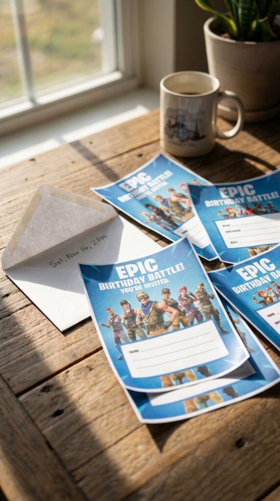 You can order personalized Fortnite invitation cards online through Etsy or Canva, where sellers customize names, dates, and even character skins. Digital versions work great too — just text or email them for instant delivery.