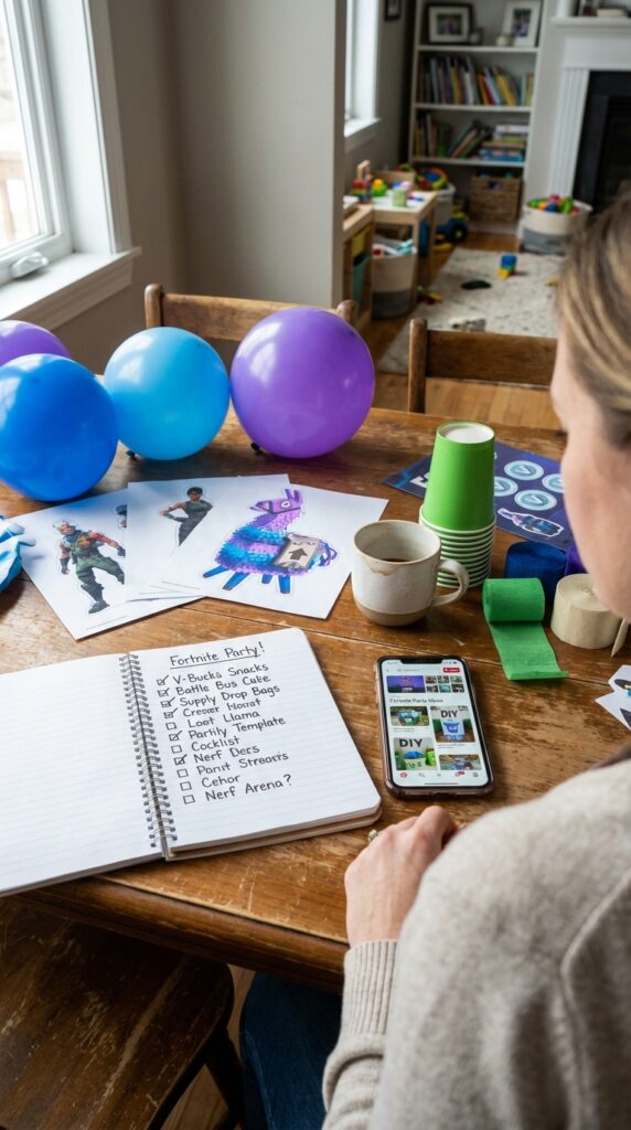 Start with your budget. A budget-friendly Fortnite party works best when you prioritize decorations, cake, and one or two activities. You don’t need every detail to be perfect.