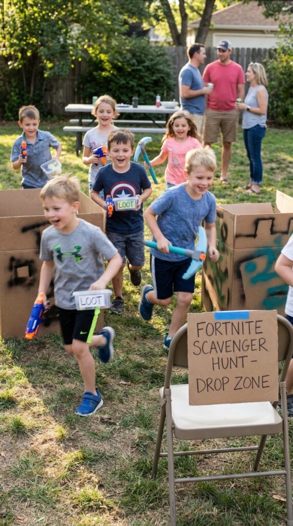 Set up scavenger hunt challenges where kids search for hidden “loot” around your backyard. Assign points for each item found, then crown a winner. You can also incorporate real-life Fortnite challenges inspired by in-game mechanics to make the hunt feel even more authentic.