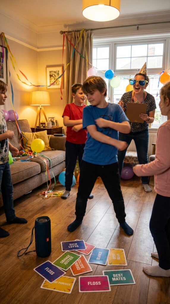 Use a Bluetooth speaker with a Fortnite playlist, and appoint a silly “judge” wearing oversized sunglasses. Trust me, watching five-year-olds attempt the Floss is genuinely hilarious.