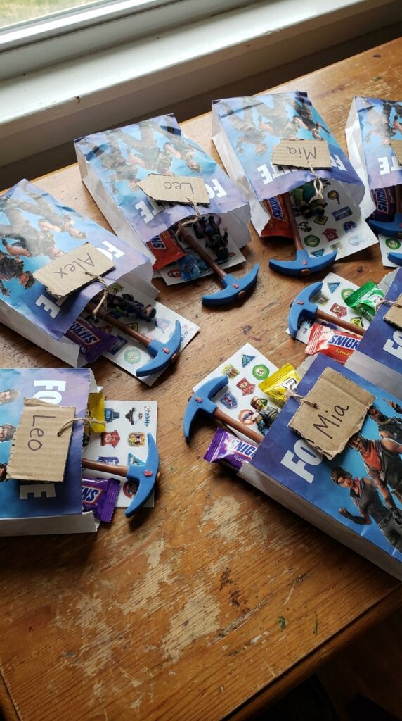 Think of it like fortnite loot box contents: every item should feel like a find. Toss in mini figures, sticker sheets, temporary tattoos, and Fortnite-themed candy.